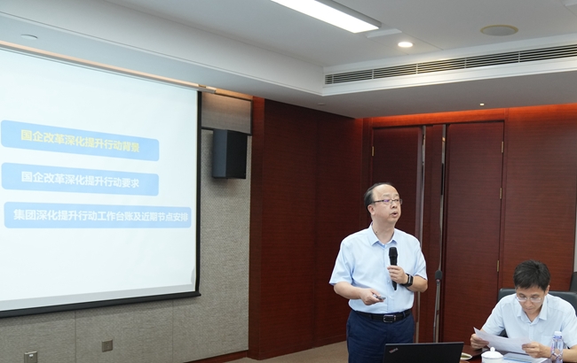 会上,集团副总经理毛昌辉解读了《国有企业改革深化提升行动方案》。他指出,新一轮国企改革深化提升行动,功能使命性任务是新的亮点重点,体制机制性任务仍存在短板弱项。要以本轮改革深化提升行动为抓手,统筹其他专项工作同步推进,进一步增强全面深化改革的思想自觉和行动自觉,对标对表谋改革,以高度使命感、责任感、紧迫感推进国企改革深化提升行动。