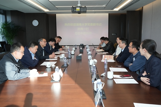 相关部门分别介绍了人才工作、研究生教育和项目合作情况。双方就行业发展、人才需求及湖南大学校友情况、人才培养工作等进行深入交流。双方一致认为,要进一步加强交流合作,充分利用各自的优势资源,共同促进产学研深度融合,加强人才交流,推动科技创新。