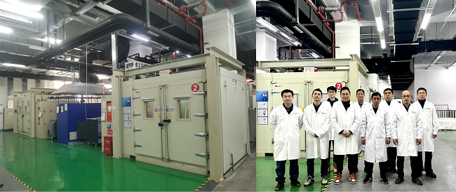 国联研究院始终以保障新能源行业安全快速发展为使命,持续攻关行业共性技术难题。在无规范参考情况下,联合相关单位积极创新,完成了火烧实验室设计和建设,建成北方唯一的室内火烧实验室,可模拟完成电池系统遭遇汽油燃烧和热失控等严苛条件下的相关安全测试。针对客户重点难点需求,开展研发攻关,实现了电池及系统水平垂直翻转、冰水冲击等极端条件的模拟检测验证,为企业产品验证保驾护航。针对行业共性技术难题,创新研究热失控产气测试方法及泄压阀开启压力测试方法,开发出相关检测装备,形成团体标准,并已实现行业服务。积极参与社会公共安全相关服务,为北京市多支消防支队电池送样样品提供安全评价测试服务,开展电动自行车用电池的安全评价技术研发,协助北京卫视安全第一课电池热失控起火危害拍摄宣传。