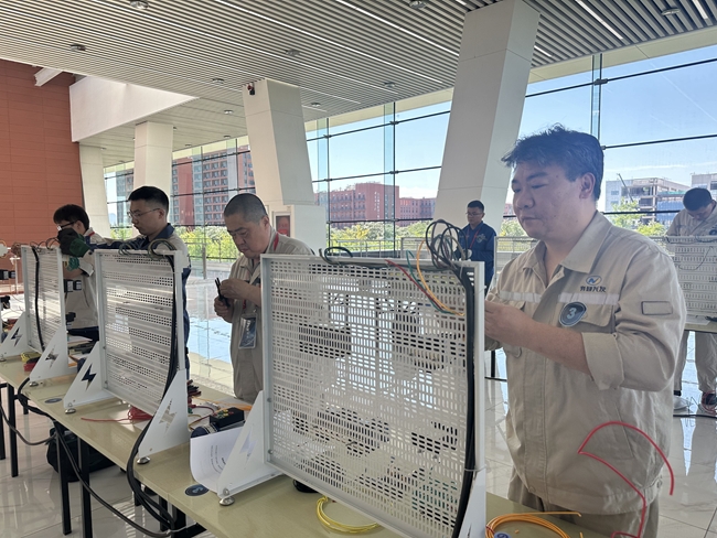 电工竞赛由理论知识考试和实操竞技两个环节组成,在理论知识考核环节,选手们沉着冷静、认真答题,展现出了扎实的理论基础和丰富的知识储备。而在实操竞技比拼中,选手们更是全神贯注、争分夺秒,熟练运用各种工具和仪器,按照要求完成电路设计、安装、调试等任务。评审团严守规则,认真履行职责。赛场上秩序井然、气氛紧张而热烈。