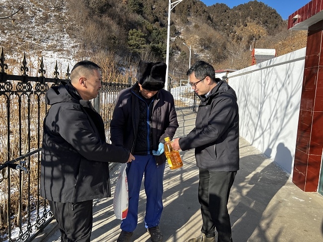 1月16日,国联研究院第二党支部书记方彦彦、纪检委员崔义前往怀柔区汤河口镇东湾子村开展迎新春走访慰问,东湾子村党支部书记高财及支委委员等陪同走访慰问低保户家庭,了解老人的身体和生活状况,并送去慰问品及新年祝福。