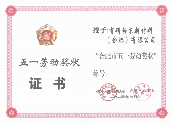 为弘扬先进、树立典型,合肥市劳动竞赛委员会、市总工会组织开展了2024年度“合肥市五一劳动奖状”“合肥市五一劳动奖章”“合肥市工人先锋号”评选,有研粉末新材料(合肥)有限公司喜获“合肥市五一劳动奖状”。
