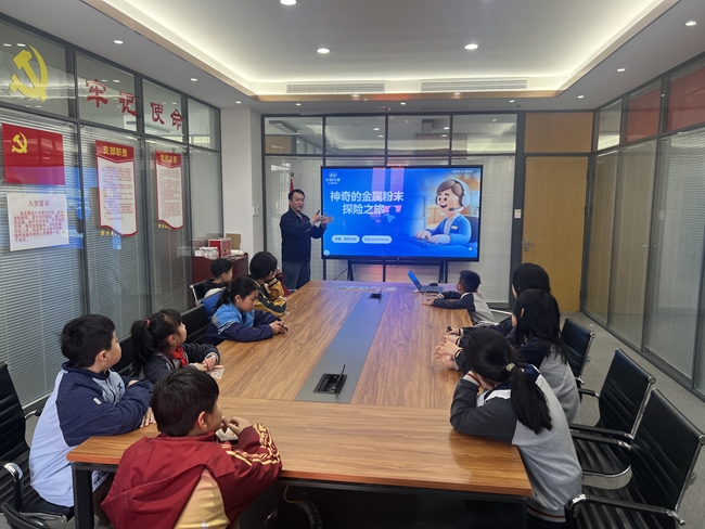 参观结束后,小朋友们观看了PPT讲解,进一步深入学习铜基粉体材料的工艺原理、产品应用场景以及行业发展前景。孩子们认真聆听、积极互动,在沉浸式学习中,拓宽了科学视野,激发了对新材料领域的探索热情。