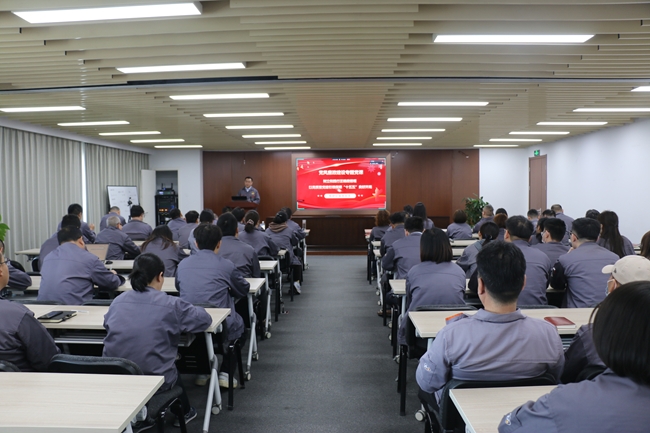 滕海涛以“树立和践行正确政绩观 以高质量党建引领保障‘十五五’良好开局”为题做报告,结合公司实际提出四点意见:一是提高政治站位,深刻领会党的自我革命新要求,将自我革命精神融入研发攻关全过程;二是聚焦发展大局,强化政治监督,持续保障公司产业链供应链安全稳定运行;三是树牢正确政绩观,弘扬科学家精神和工匠精神,以严实作风推动高质量发展;四是深化“三不腐”机制,保持高压态势,扎紧制度笼子,增强廉洁自律,为高质量发展筑牢屏障。