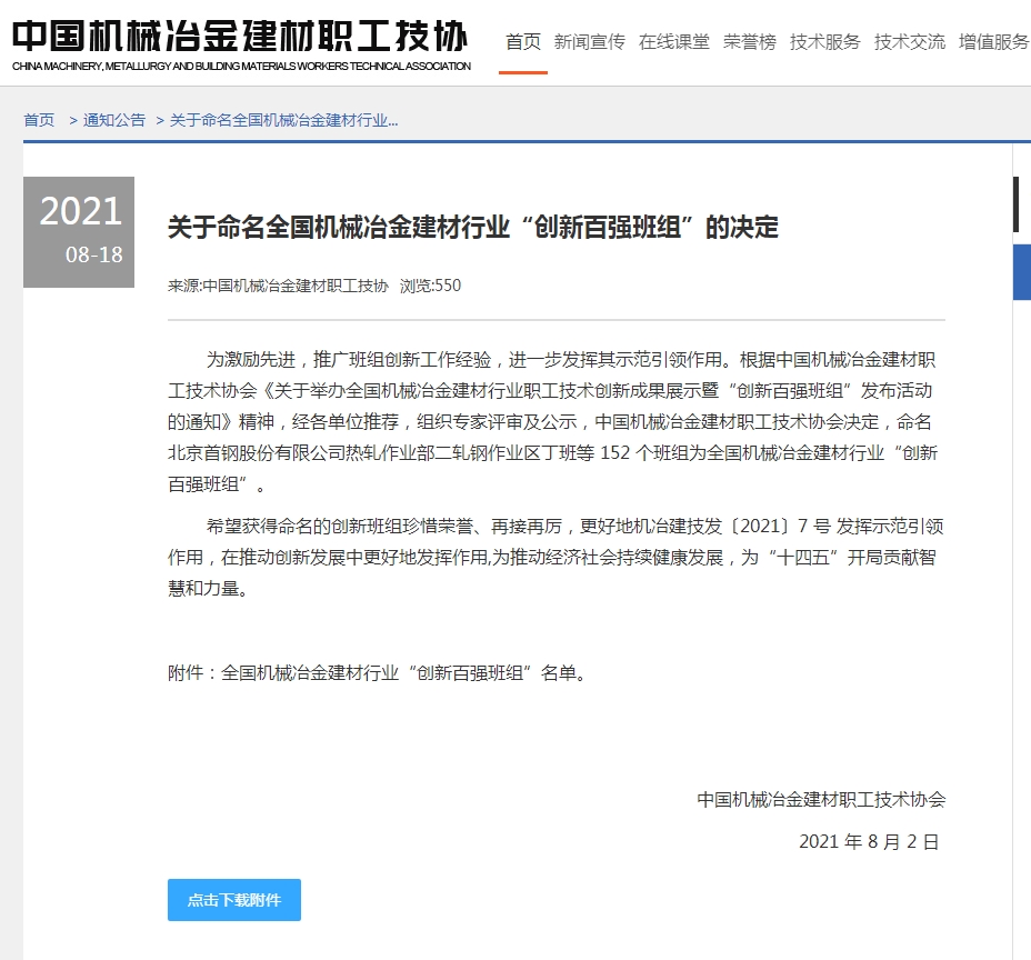 秉持“自我提升”理念,创收创新两手抓。2021年,国联研究院动力电池性能测试评价班组在2020年荣获有研集团“红旗班组”称号基础上,持续完善班组规范化建设,推进管理、创新、创收等方面能力提升,进一步荣获全国机械冶金建材行业“创新百强班组”荣誉,实现产值近2000万,完成行业标准2项,开发新检测方法2项,申请专利6项,发表SCI论文2篇。