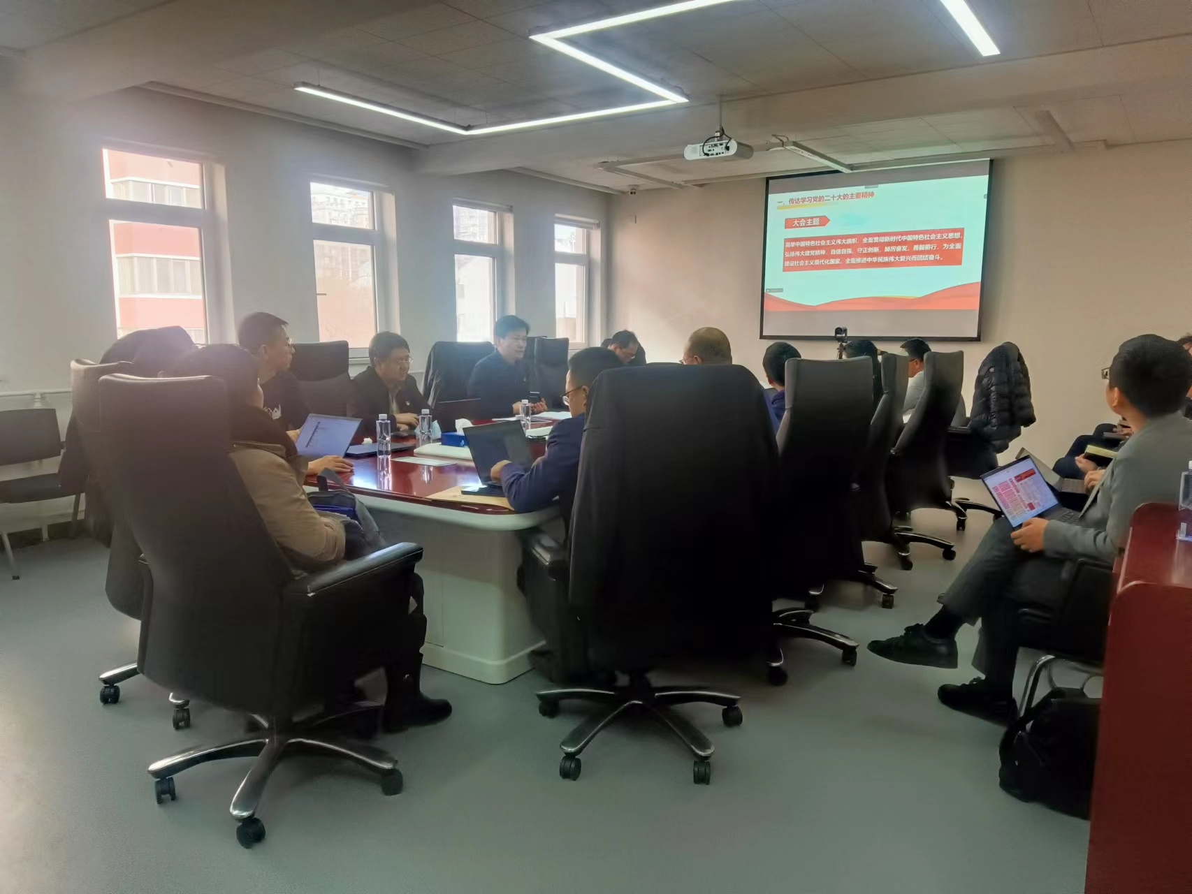 副总经理、总法律顾问、首席合规官、职能部门党总支书记黄倬以深入学习贯彻党的二十大精神为题作专题党课,职能部门全体党员通过线上线下方式参会听讲。