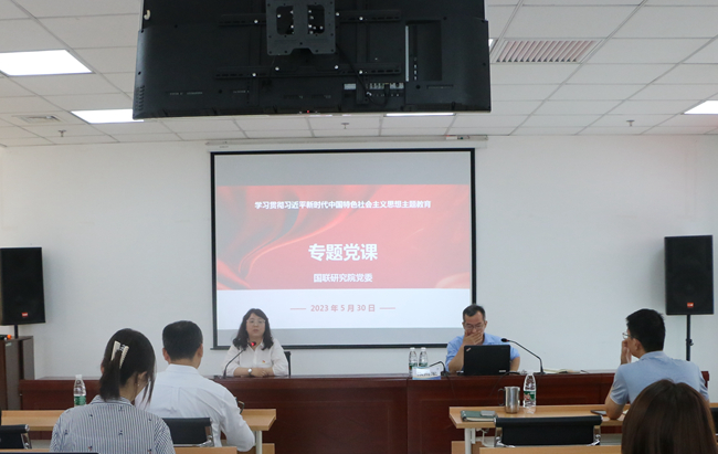 按照学习贯彻习近平新时代中国特色社会主义思想主题教育工作计划安排,5月30日,国联研究院党委组织开展主题教育专题学习,国联研究院党委副书记、纪委书记罗茜主持会议,国联研究院党委委员、副总经理张向军讲授专题党课,题目是《以高水平科技自立自强 实现创新驱动高质量发展》,公司党委班子成员、全体党员参加学习并交流研讨。