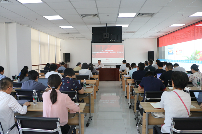 曹泊宇以《深入开展主题教育 培养技术报国的政治自觉、思想自觉、行动自觉》为题讲授专题党课,从继承弘扬伟大建党精神、以中国式现代化推进国资央企创新发展、建设适应新时代要求的干部队伍三方面,展开系统翔实的解读阐释。