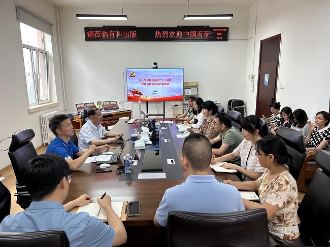 钱九红做了题为《以党的二十大精神为指引 拥抱数字新时代》的专题党课报告。她领学了习近平总书记关于建设数字中国的重要论述,对党的二十大报告中有关国家文化数字化战略以及发展数字经济、打造具有国际竞争力的数字产业集群等重要部署进行了重点解读,讲解了以“元宇宙”“ChatGPT”为代表的全球前沿数字技术,强调有科出版要贯彻落实数字中国建设重要部署,积极拥抱挑战与变化,大力推动期刊资源、数字资源深度融合,加快构建数字出版、行业服务一流平台。