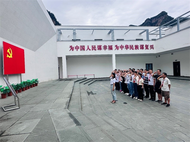 党员们沿着红旗渠建设者的足迹,参观了红旗渠的分水枢纽分水闸,徒步登上红旗渠咽喉工程青年洞,并观看了谷文昌生平事迹展和扁担精神纪念馆,感悟红旗渠建设者的坚韧和执着。在青年洞口,全体党员重温入党誓词,牢记初心使命,传承红色血脉。