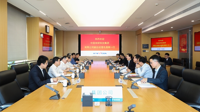与中广核集团举行专题对接会。中广核集团党委委员、副总经理庞松涛,科技数字化部副总经理周国丰,中广核研究院副总经理周洲,中广核新能源副总经理丁业良等出席会议。