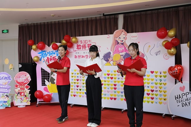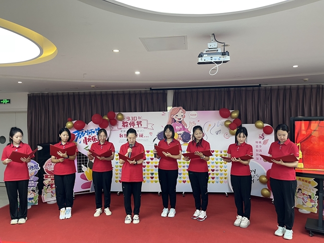 活动在孩子们稚嫩嘹亮的歌声中拉开了序幕“听我说,谢谢您...”优美动听的童声合唱表达了孩子们对教师浓浓的感恩之情。教师们也用深情的诗朗诵展现了逐梦前行的理想信念和对教师职业全心全意的热爱。