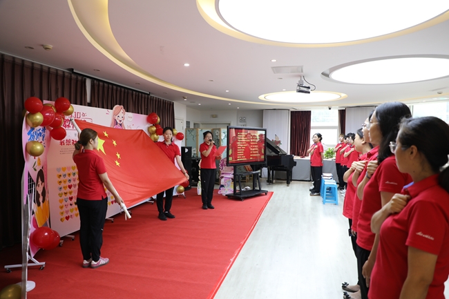 全体教职工在国旗下庄严宣誓,承诺做到严格恪守幼儿教师的职业道德规范,为孩子快乐健康成长奋斗终生。