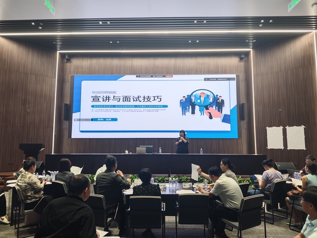 组织开展了宣讲与面试技巧培训,邀请前程无忧公司特聘面试官、人才发展专家沈阳老师进行授课。