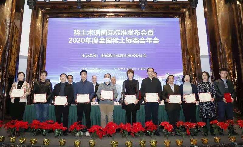 会议颁发了“2020年度稀土标委会技术标准优秀奖”,并对“2020年度稀土标准化先进工作者”进行了表彰。有研稀土及其子公司乐山有研牵头制定的两项行业标准《绿色设计产品评价技术规范 稀土火法冶炼产品》《镧铈金属》均获得2020年度稀土标委会技术标准奖;赵龙胜博士获评2020年度稀土标准化先进工作者。