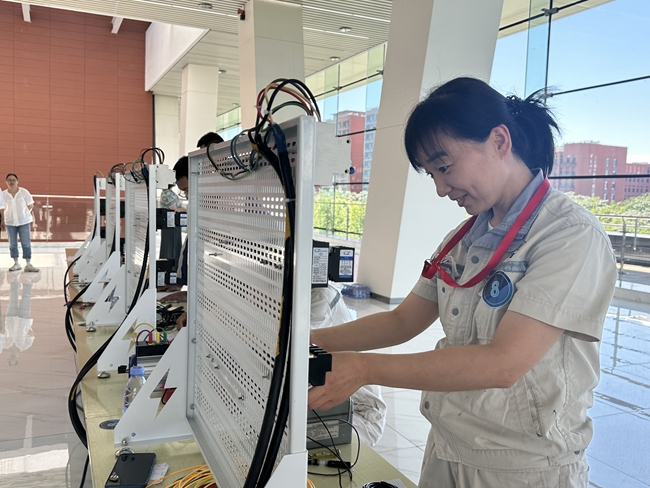 电工竞赛由理论知识考试和实操竞技两个环节组成,在理论知识考核环节,选手们沉着冷静、认真答题,展现出了扎实的理论基础和丰富的知识储备。而在实操竞技比拼中,选手们更是全神贯注、争分夺秒,熟练运用各种工具和仪器,按照要求完成电路设计、安装、调试等任务。评审团严守规则,认真履行职责。赛场上秩序井然、气氛紧张而热烈。