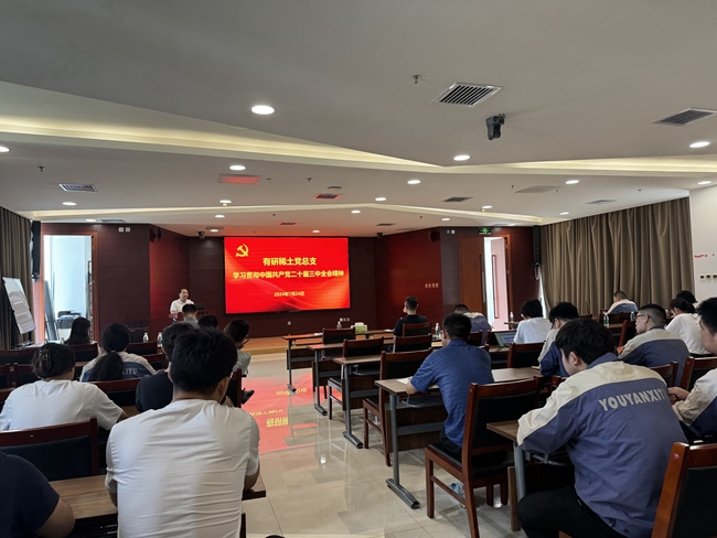 7月24日,有研稀土党总支召开全体党员大会,传达学习党的二十届三中全会精神。公司党总支委员、经营班子成员出席会议,所属各党支部党员通过线下、线上相结合的方式参加会议。公司党总支副书记、副总经理许国栋主持会议。