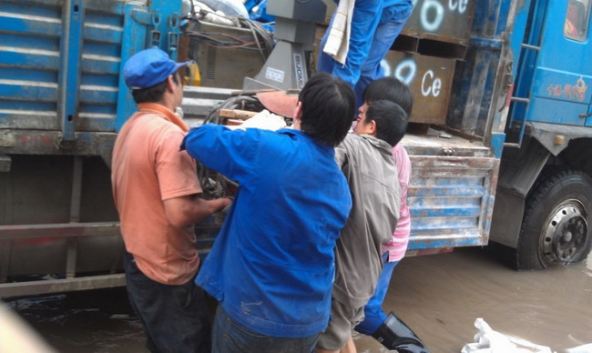 洪灾时公司员工抢救有价物资