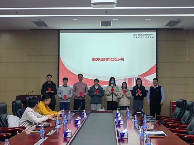 随后,团支部召开团员大会。唐爱悦代表支委班子向全体团员报告了2024年团支部工作,对超龄团员进行了寄语。大会按照《超龄离团仪式规定(试行)》要求,为11名超龄团员举行了离团仪式,颁发了离团纪念证书。