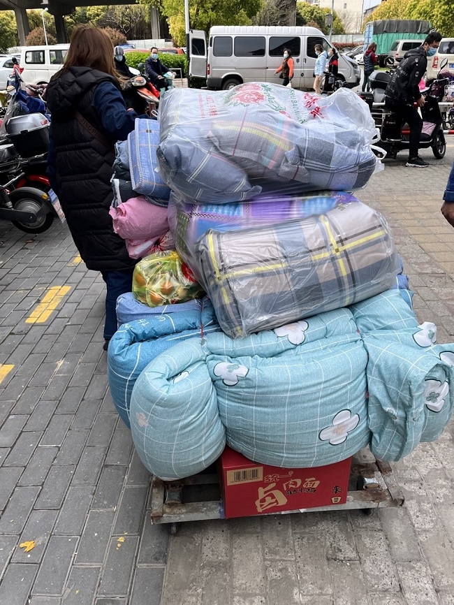 为满足驻守员工的生活需求,上海团干部季悦主动担当,为驻守员工加急采购被褥、床单、方便食品及果蔬等物资,并发放到员工手中,确保员工生活保障。团干部积极寻找途径采购新冠抗原试剂,保障封控期间及解封后的员工检测储备需求。