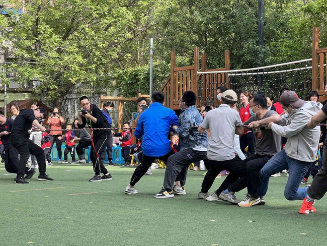 本届运动会上,家长们也进行了激烈的比拼,为孩子们做出了榜样,家长竞技“齐心协力”、“接力赛”将现场气氛推向高潮,孩子们在一旁加油呐喊,欢呼雀跃,场面十分热烈。游戏场上时时传来掌声与笑声,整个运动场上瞬间变成了欢乐的海洋。此时此刻,爸爸妈妈是孩子们的大朋友,一起游戏、一起运动、一起享受快乐时光!这才是运动该有的样子!
