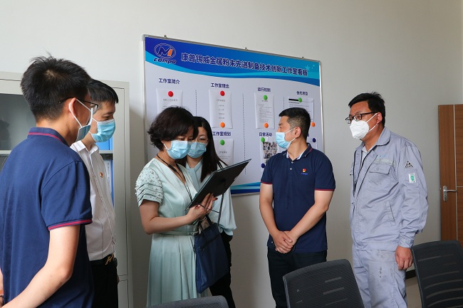 督导结束后,叶松芳一行来到康普锡威电子浆料先进班组、有研增材粉体生产先进班组进行调研,随后,叶松芳与有研粉材工会相关负责人就先进班组和创新工作室建设等事宜展开交流讨论。叶松芳表示,创新工作室与班组建设各有分工和侧重,班组是企业最小单元,加强班组建设有利于提升企业综合管理水平和产品质量。创新工作室可以是跨工段、跨部门的,突出为企业提质增效的同时,更要发挥协同攻关作用,协同科研团队解决“卡脖子”难题。同时,将创新工作室作为培养培训一线员工的基地和课堂,助力企业人才培养。