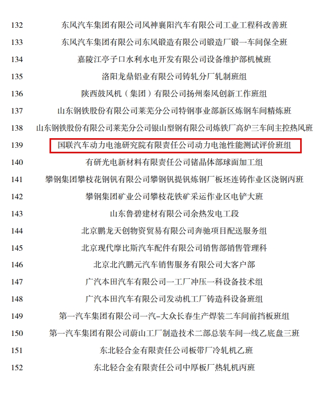 秉持“自我提升”理念,创收创新两手抓。2021年,国联研究院动力电池性能测试评价班组在2020年荣获有研集团“红旗班组”称号基础上,持续完善班组规范化建设,推进管理、创新、创收等方面能力提升,进一步荣获全国机械冶金建材行业“创新百强班组”荣誉,实现产值近2000万,完成行业标准2项,开发新检测方法2项,申请专利6项,发表SCI论文2篇。